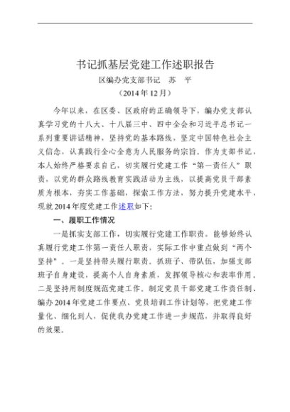 / 述职报告:2014年度书记抓基层党建工作述职报告(编办)