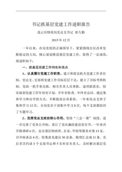 / 述职报告:2015年度书记抓基层党建工作述职报告(财政局)
