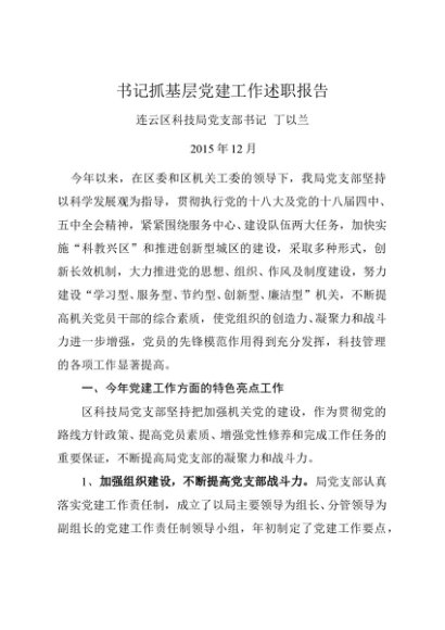 / 述职报告:2015年度书记抓基层党建工作述职报告(科技局)