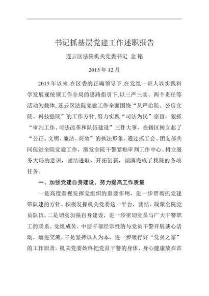 / 述职报告:2015年度书记抓基层党建工作述职报告(法院)