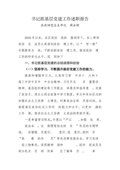 / 述职报告:2016年度书记抓基层党建工作述职报告(政协办)