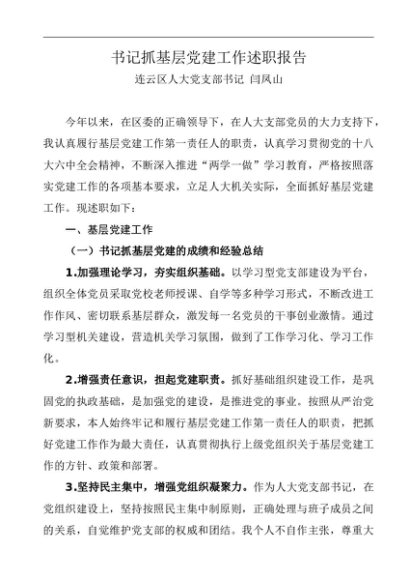 / 述职报告:2016年度书记抓基层党建工作述职报告(人大办)