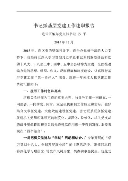 / 述职报告:2015年度书记抓基层党建工作述职报告(编办)