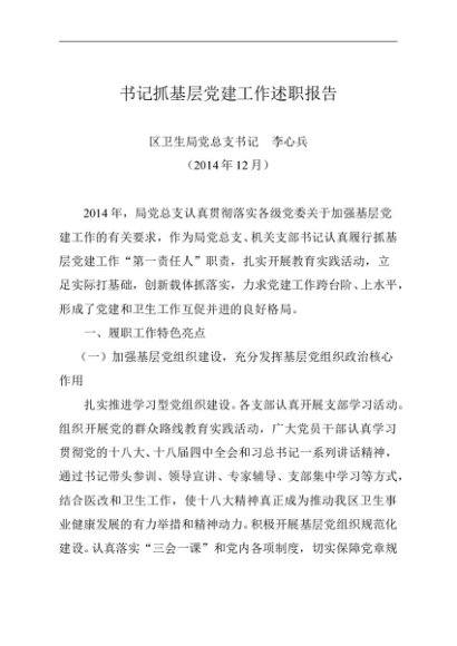 / 述职报告:2014年度书记抓基层党建工作述职报告(连云区卫生局)