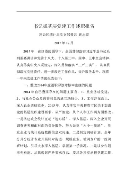 / 述职报告:2015年度书记抓基层党建工作述职报告(统计局)