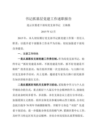 / 述职报告:2015年度书记抓基层党建工作述职报告(老干局)