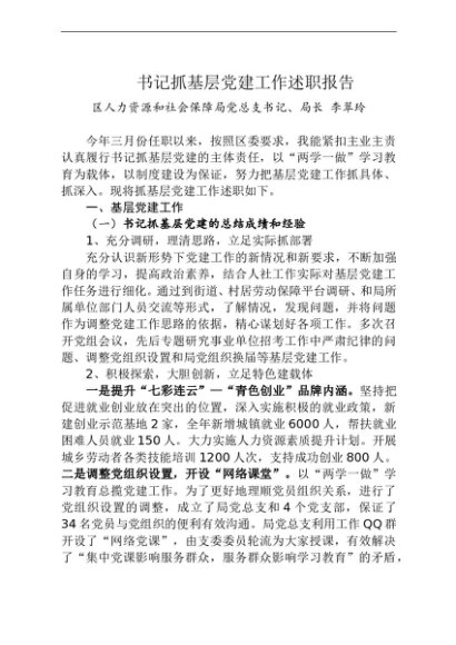 / 述职报告:2016年度书记抓基层党建工作述职报告(人社局)