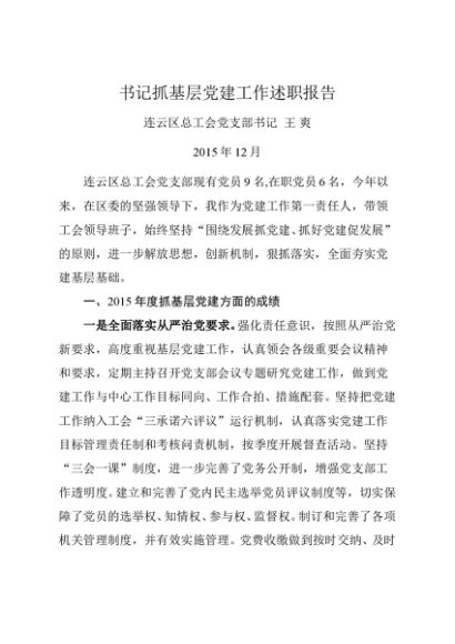 / 述职报告:2015年度书记抓基层党建工作述职报告(工会)