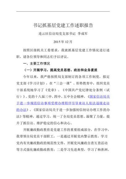 / 述职报告:2015年度书记抓基层党建工作述职报告(信访局)