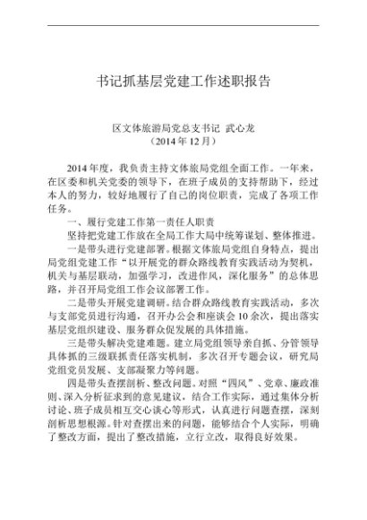 / 述职报告:2014年度书记抓基层党建工作述职报告(文体旅)