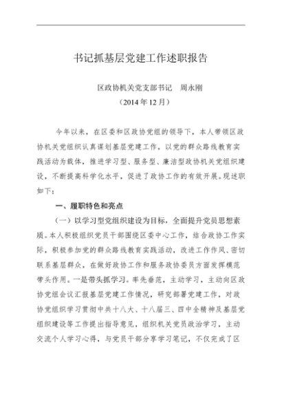 / 述职报告:2014年度书记抓基层党建工作述职报告(区政协)