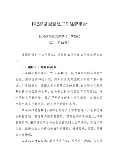 / 述职报告:2014年度书记抓基层党建工作述职报告(民政局)