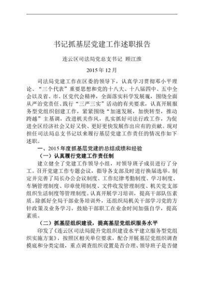 / 述职报告:2015年度书记抓基层党建工作述职报告(司法局)