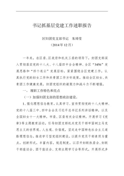 / 述职报告:2014年度书记抓基层党建工作述职报告(妇团)