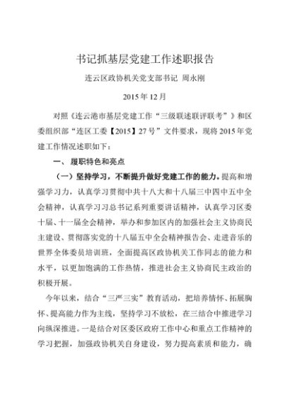 / 述职报告:2015年度书记抓基层党建工作述职报告(政协办)