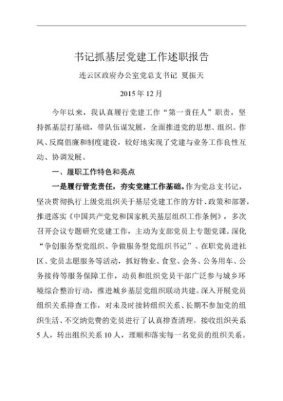 / 述职报告:2015年度书记抓基层党建工作述职报告(政府办)