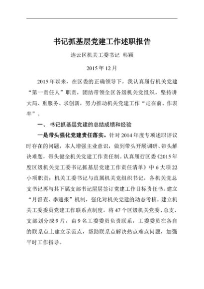 / 述职报告:2015年度书记抓基层党建工作述职报告(机关工委)