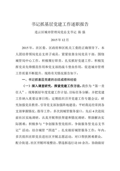 / 述职报告:2015年度书记抓基层党建工作述职报告(城管局)