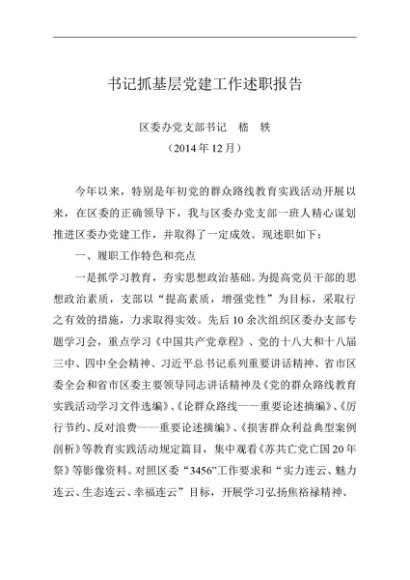 / 述职报告:2014年度书记抓基层党建工作述职报告(区委办公室)