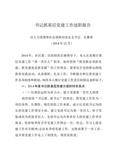 / 述职报告:2014年度书记抓基层党建工作述职报告(人社局)