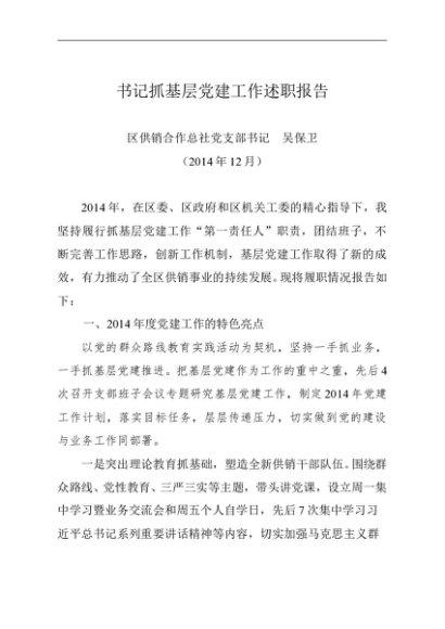 / 述职报告:2014年度书记抓基层党建工作述职报告(供销社)