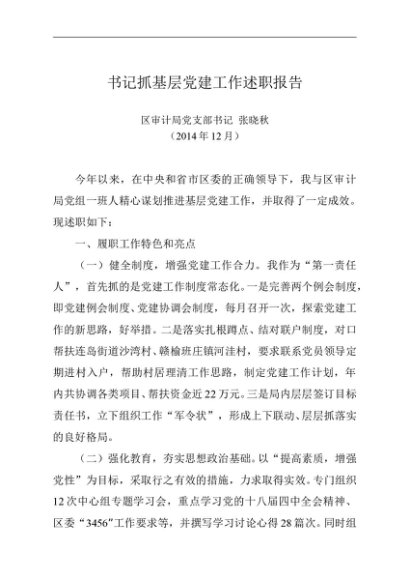 / 述职报告:2014年度书记抓基层党建工作述职报告(区审计局)