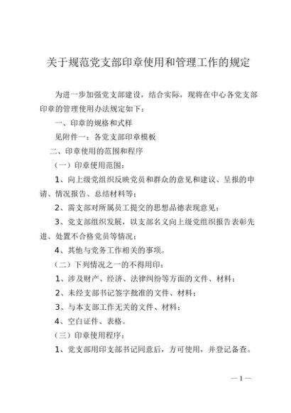 务实手册0070: 关于规范党支部印章使用和管理工作的规定