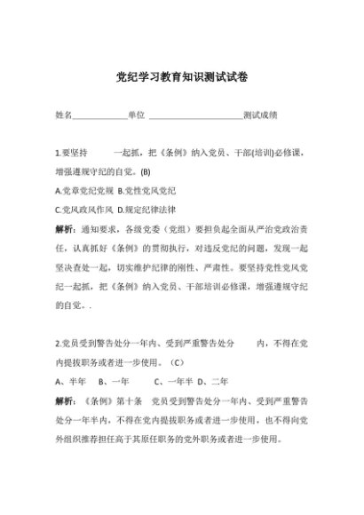 / 务实手册0024:党纪学习教育知识测试试卷(含答案及解析)