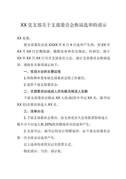务实手册0009:党支部换届三请示、三批复(模板)