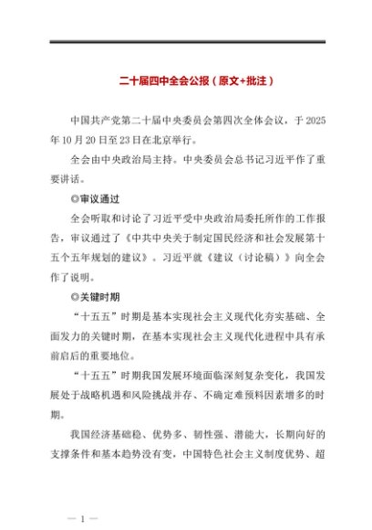 / 专题学习:二十届四中全会│20251023二十届四中全会公报(原文+批注)