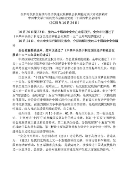 专题学习:二十届四中全会│20251028党课:中共中央举行新闻发布会解读党的二十届四中全会精神