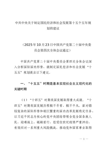 / 专题学习:二十届四中全会│20251028中共中央关于制定国民经济和社会发展第十五个五年规划的建议(全文)