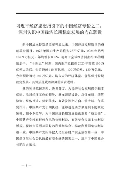 / 专题学习:二十届四中全会│20251010习近平经济思想指引下的中国经济专论02:深刻认识中国经济长期稳定发展的内在逻辑