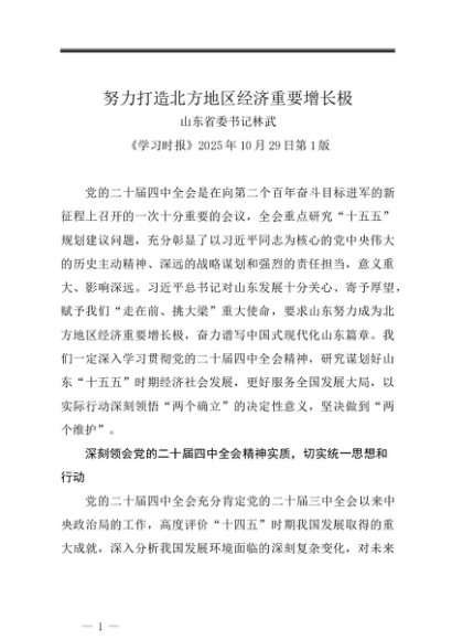 / 专题学习:二十届四中全会│20251029努力打造北方地区经济重要增长极——山东省委书记林武