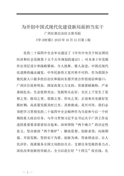 / 专题学习:二十届四中全会│20251031为开创中国式现代化建设新局面担当实干——广西壮族自治区主席韦韬