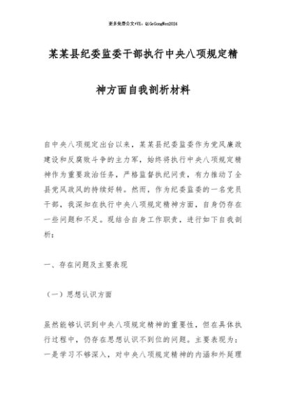 / 2025主题教育│17两个清单:某某县纪委监委干部执行中央八项规定精神方面自我剖析材料