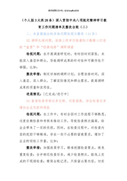 / 2025主题教育│17两个清单:深入贯彻中央八项规定精神学习教育工作问题清单及整改台账(二)