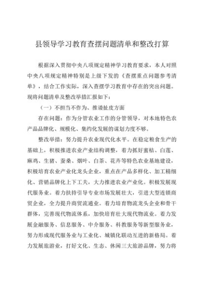 / 2025主题教育│17问题清单:县领导学习教育查摆问题清单和整改打算