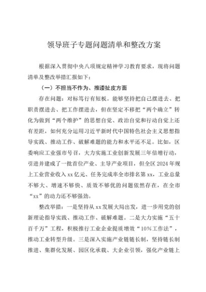 / 2025主题教育│17问题清单:领导班子专题问题清单和整改方案