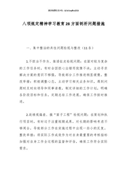 / 2025主题教育│17两个清单:八项规定精神学习教育28方面剖析问题措施