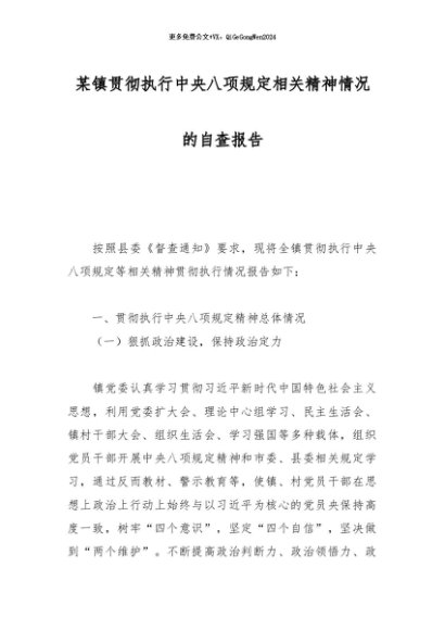 / 2025主题教育│17两个清单:某镇贯彻执行中央八项规定相关精神情况的自查报告