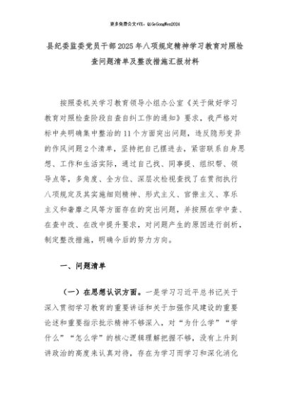 / 2025主题教育│17两个清单:县纪委监委党员干部2025年八项规定精神学习教育对照检查问题清单及整改措施汇报材料