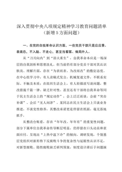 / 2025主题教育│17问题清单:深入贯彻中央八项规定精神学习教育问题清单(新增5方面问题)