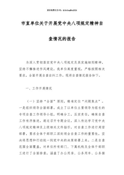 / 2025主题教育│17两个清单:市直单位关于开展党中央八项规定精神自查情况的报告