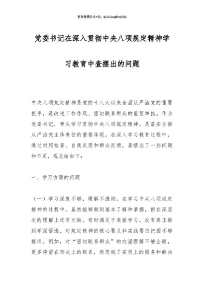 / 2025主题教育│17两个清单:党委书记在深入贯彻中央八项规定精神学习教育中查摆出的问题