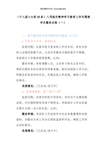 / 2025主题教育│17两个清单:深入贯彻中央八项规定精神学习教育工作问题清单及整改台账(一)