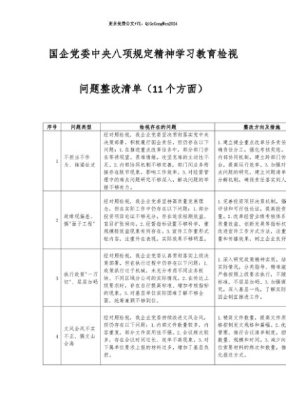 / 2025主题教育│17两个清单:国企党委中央八项规定精神学习教育检视问题整改清单(11个方面)