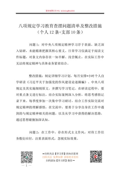 / 2025主题教育│17两个清单:八项规定学习教育查摆问题清单及整改措施(个人12条+支部10条)