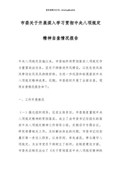2025主题教育│17两个清单:市委关于开展深入学习贯彻中央八项规定精神自查情况报告