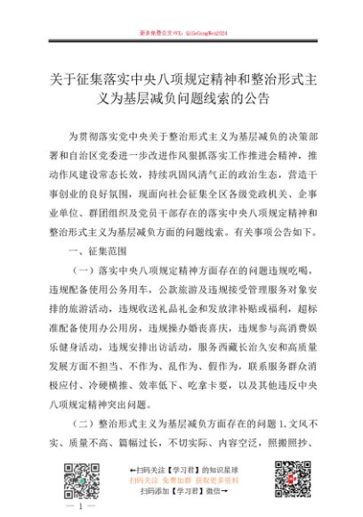 / 2025主题教育│17两个清单:关于征集落实中央八项规定精神和整治形式主义为基层减负问题线索的公告